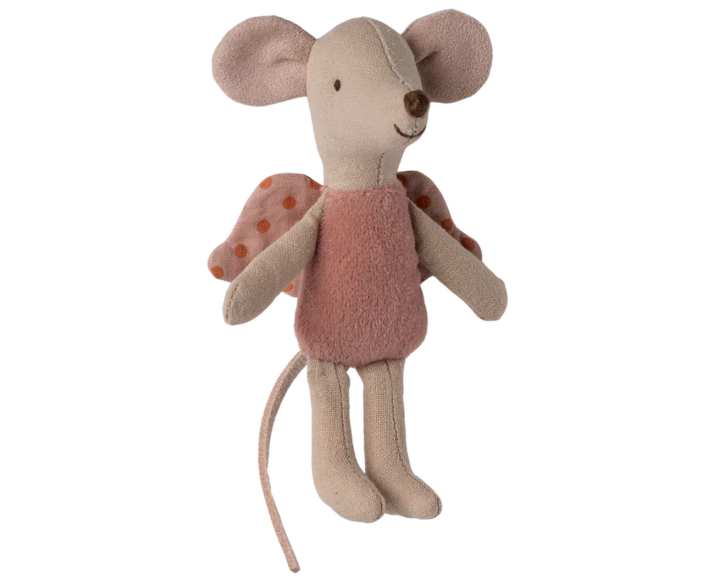 Denne søde fe-mus har en blød lille krop og vinger på ryggen. Derudover har den en snor på, så den kan hænge og flyve overalt. Den findes i tre farver: pudder, rosa og mint.
