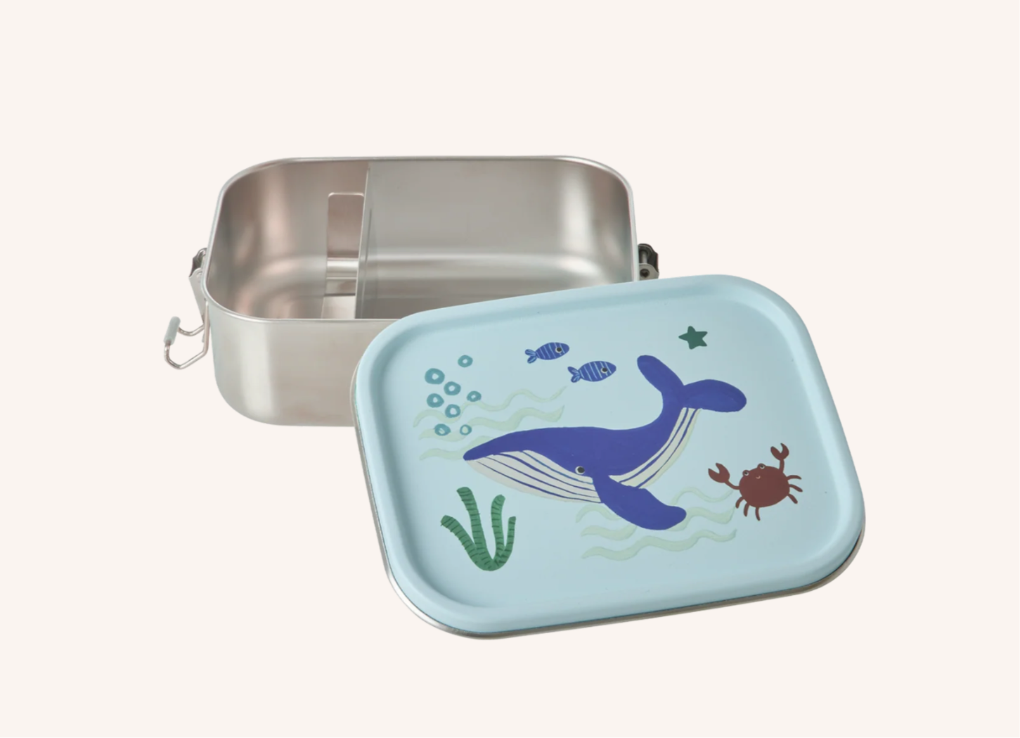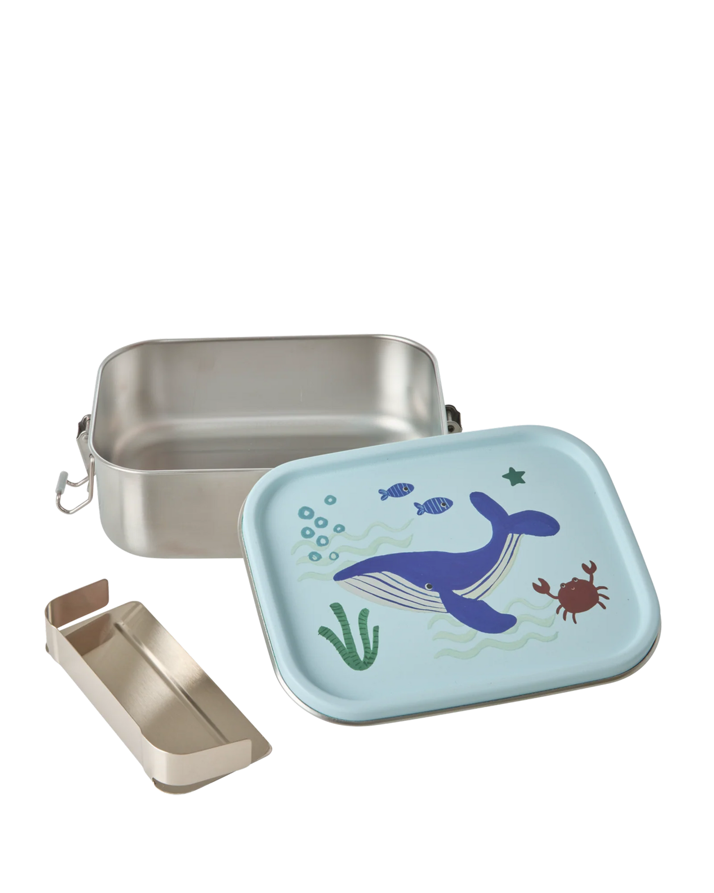 Lille Rustfri Stål Madkasse, Blå, Ocean Print, Rice