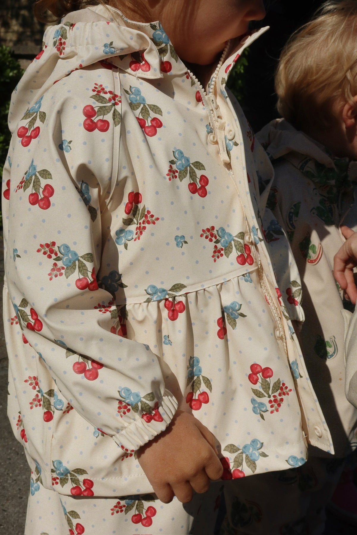 Dette smarte regnsæt fra Konges Sløjd i printet Marmelatta er både vind- og vandtæt.