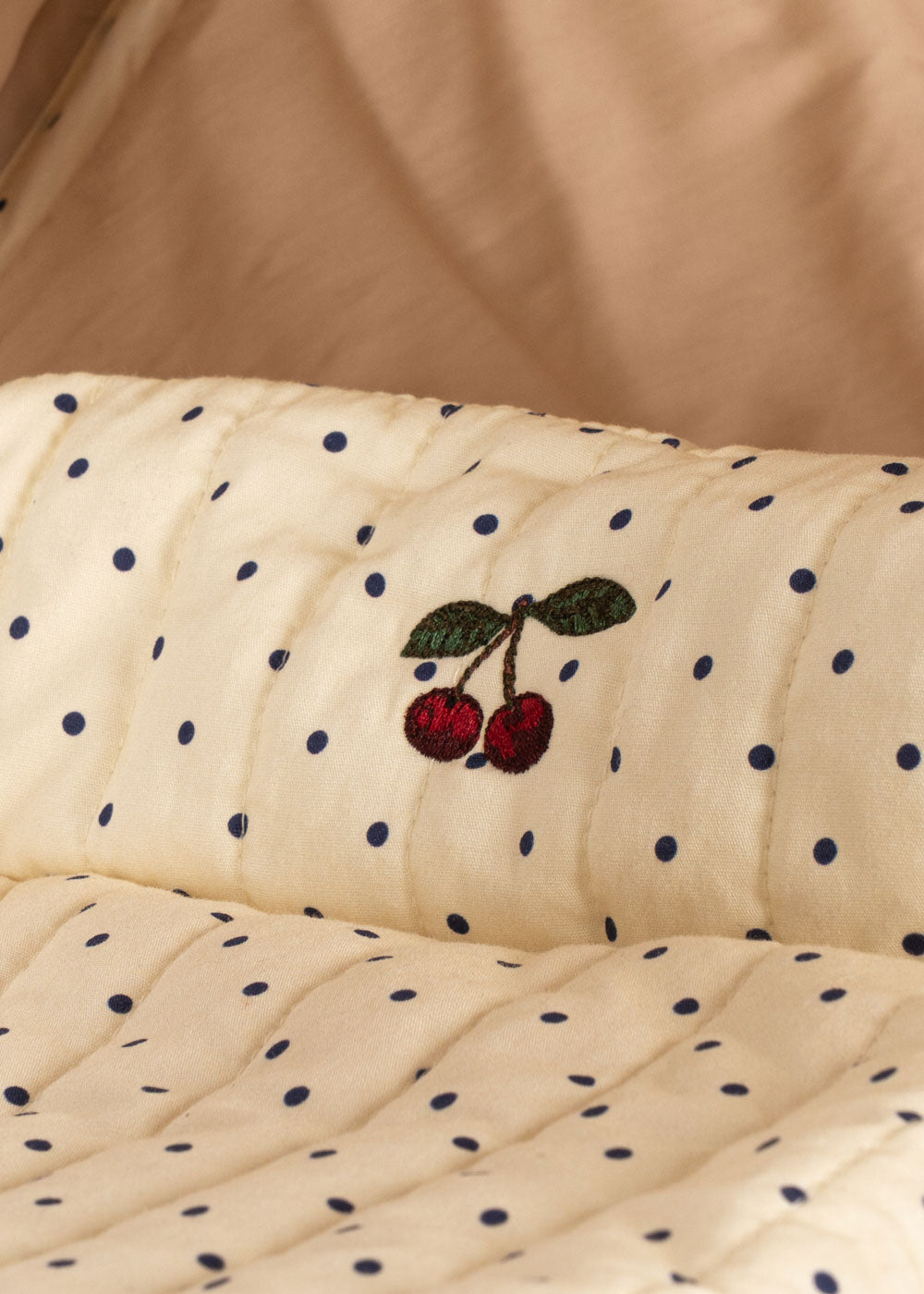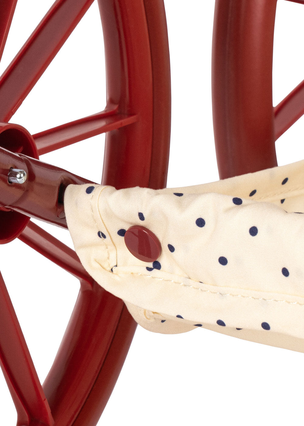 Skøn dukkevogn i vintage-stil i en mindre version. Designet med fire store hjul, hvilket gør den nem og stabil at gå rundt med. Dukkevognen indeholder en blød madras og en mønstret opbevaringskurv under liften.