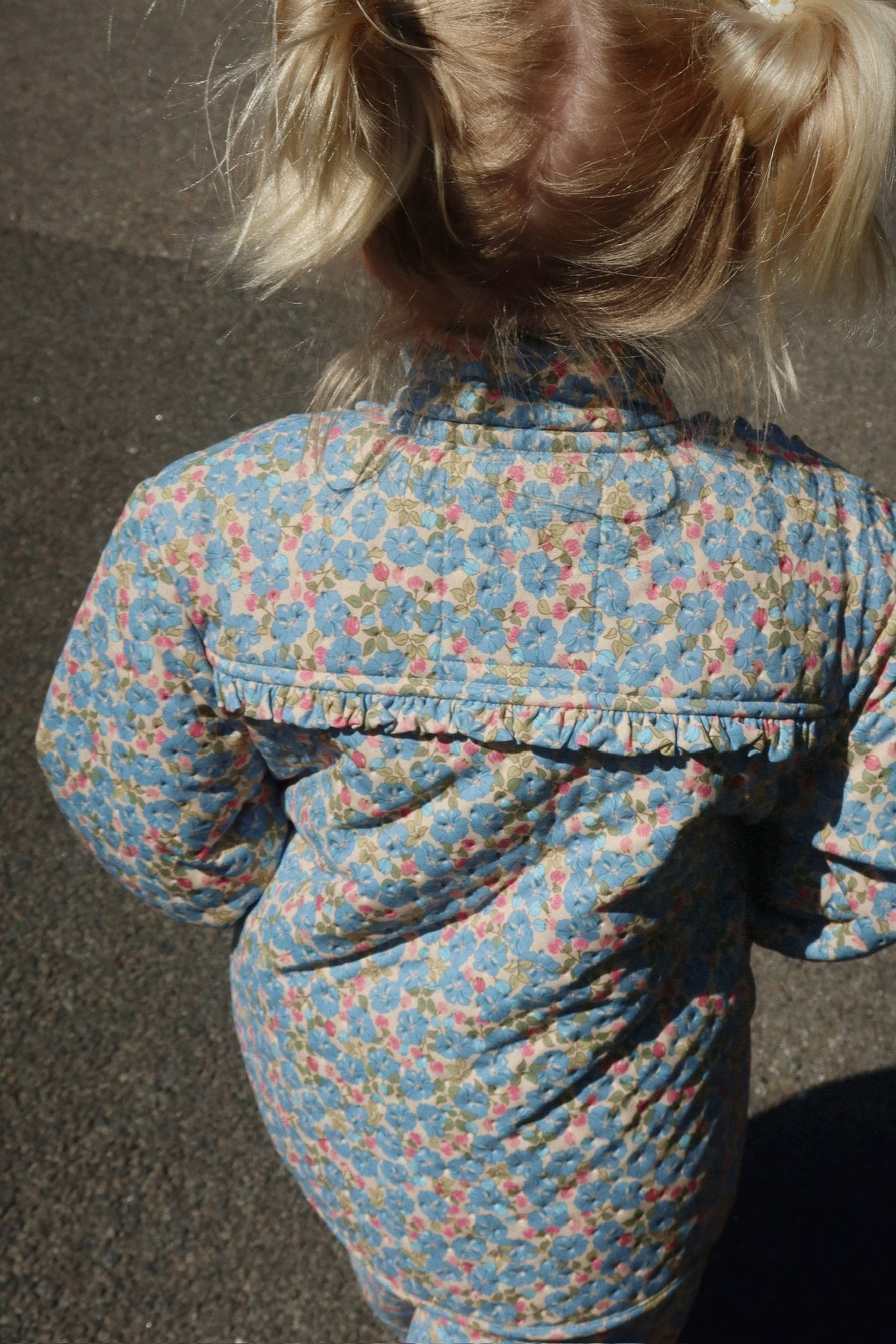 Denne smarte og praktiske termojakke fra Konges Sløjd er i printet Fleur Rosier. Jakken har de sødeste flæse detaljer.
