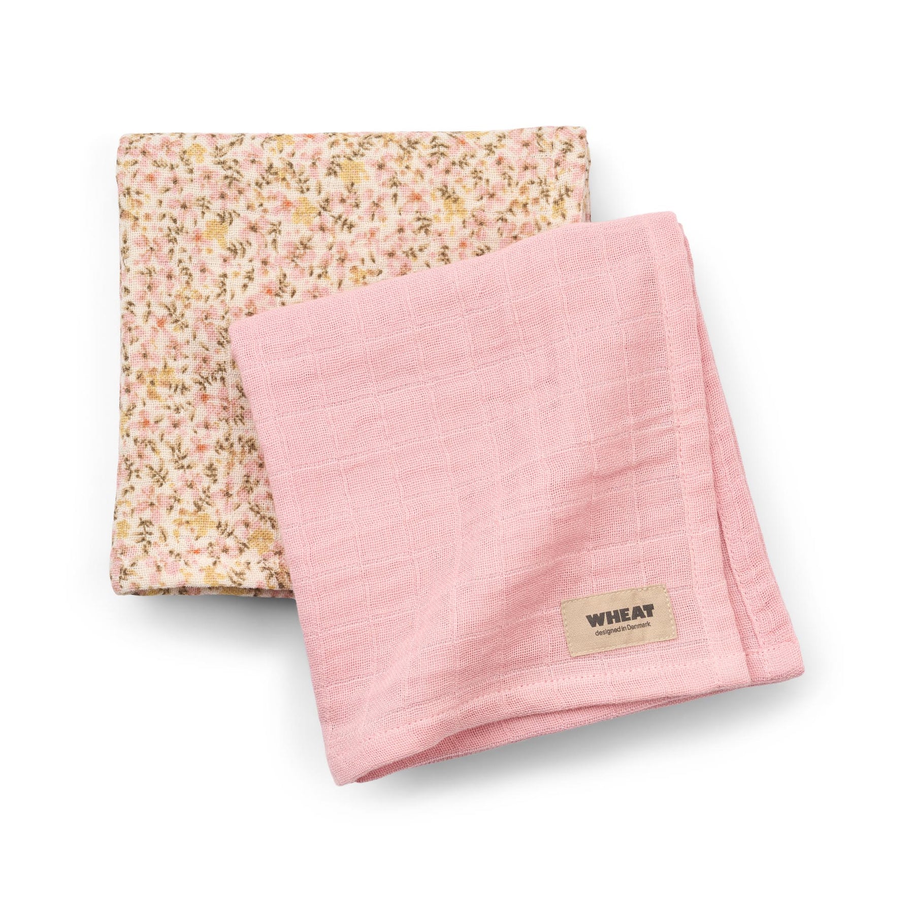 Disse bløde økologiske stofbleer fra Wheat er et must have til småbørnsfamilien. Stofbleerne kommer i 2 pk. i lyse og korale nuancer, med fint blomstermønster på den ene. De er lavet af 100% økologisk bomuld.