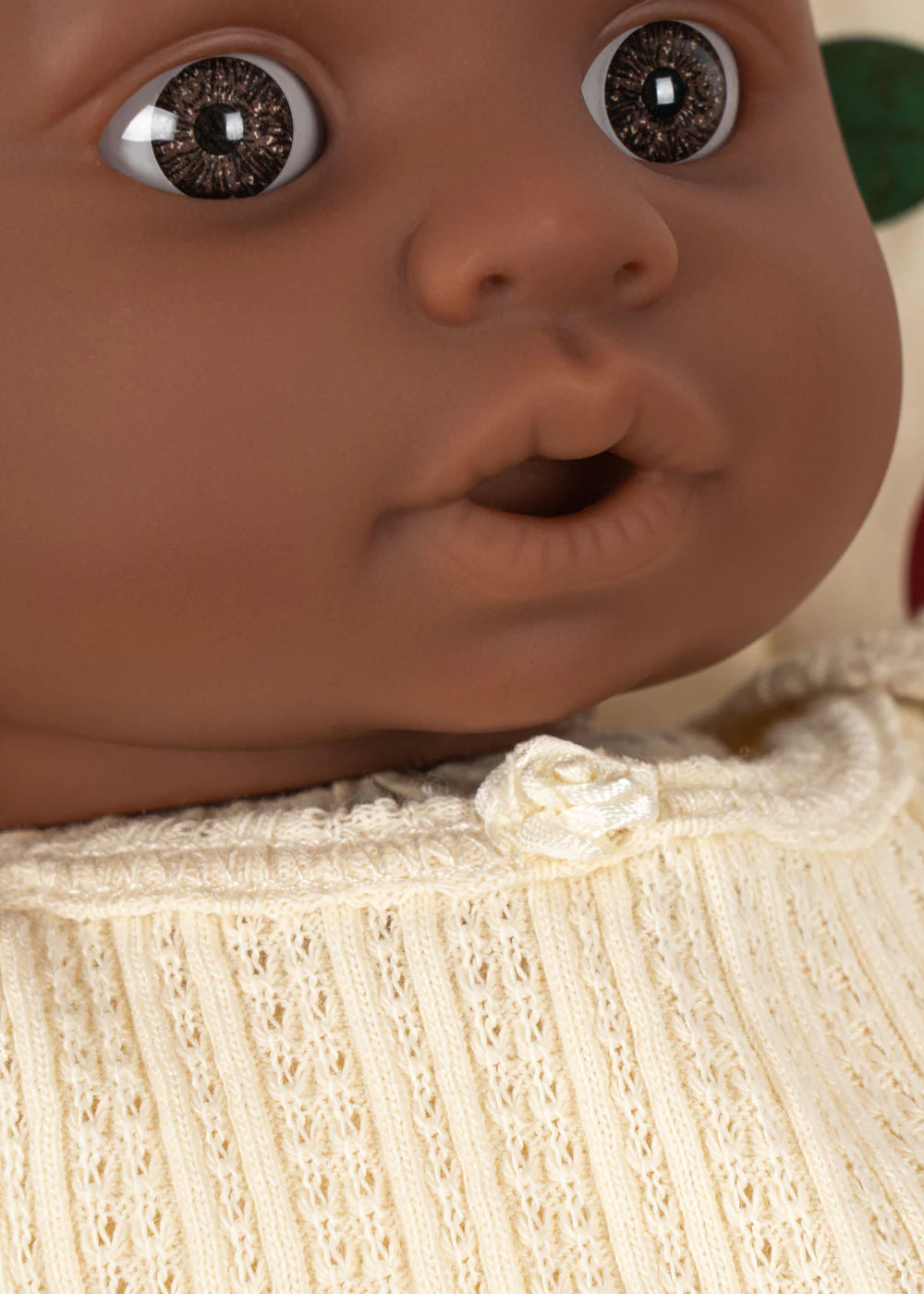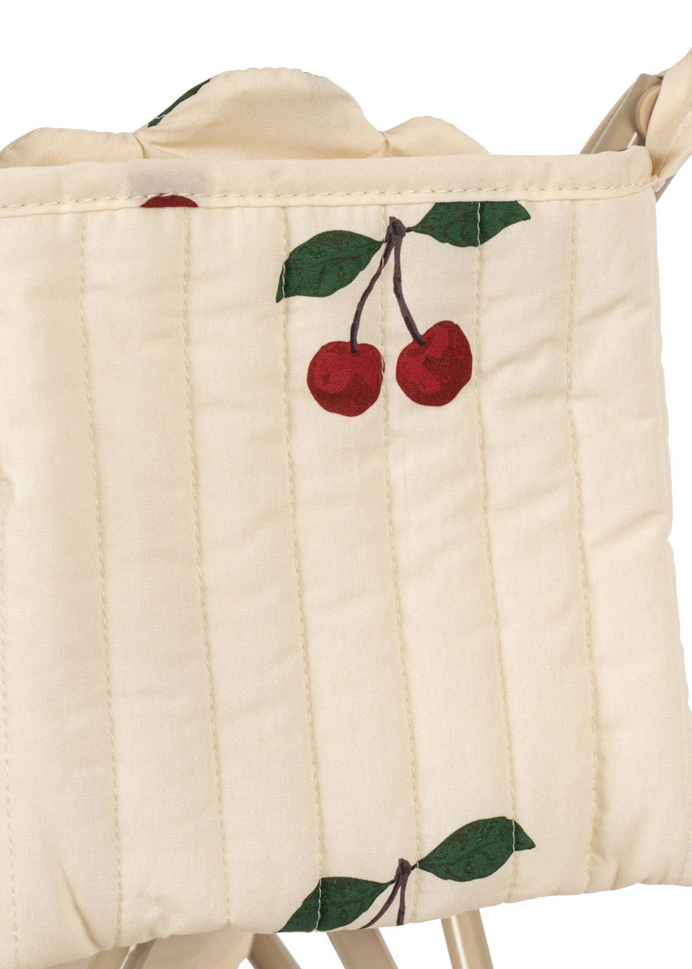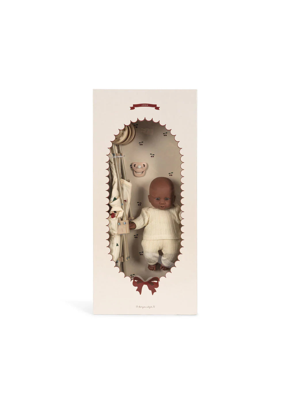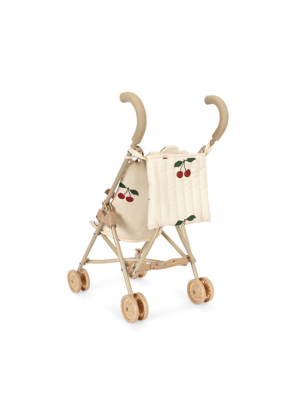 Gør gaveøjeblikket helt særligt med Cherie dukkeklapvognssæt fra Konges Sløjd, der indeholder både en sød dukke og en stilfuld klapvogn dekoreret med Konges Sløjds ikoniske kirsebærprint.